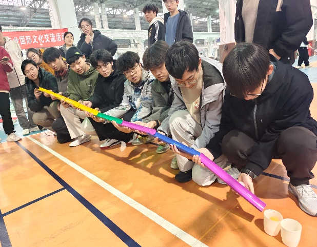 2025年11月28日下午15:00,机械中德专业在体育活动中心成功举办了以“融汇中德,趣动机械”为主题的国际文化交流活动。活动由学院机械中德工作小组组织,参与学生包括机械中德22、23、24级学生及德国富特旺根应用技术大学交流生,本次活动旨在通过跨年级、跨国籍同学的共同参与,促进文化交融、学业互促和友谊共进。