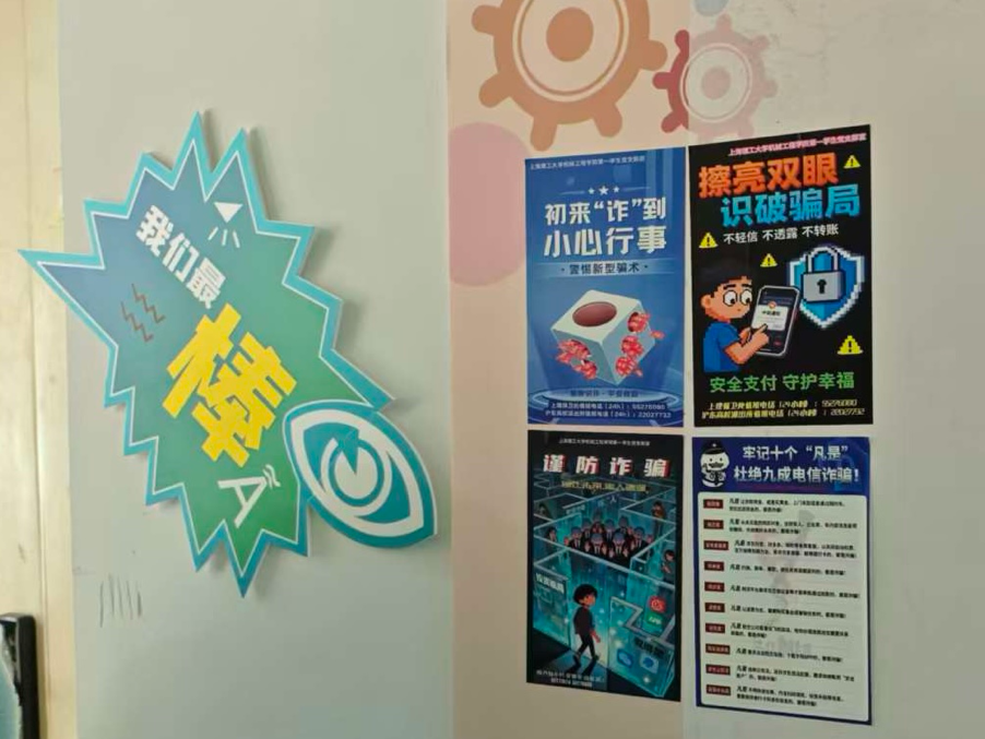 除宿舍走访外,支部还将反诈宣传融入日常党建环境建设中。在“党员读书角”和“党建宣传栏”等空间,专门设置了反诈海报展示区,将防诈知识作为党员学习教育与群众宣传的重要内容,形成长期、固定的宣传阵地,让安全意识融入同学们的日常学习生活。