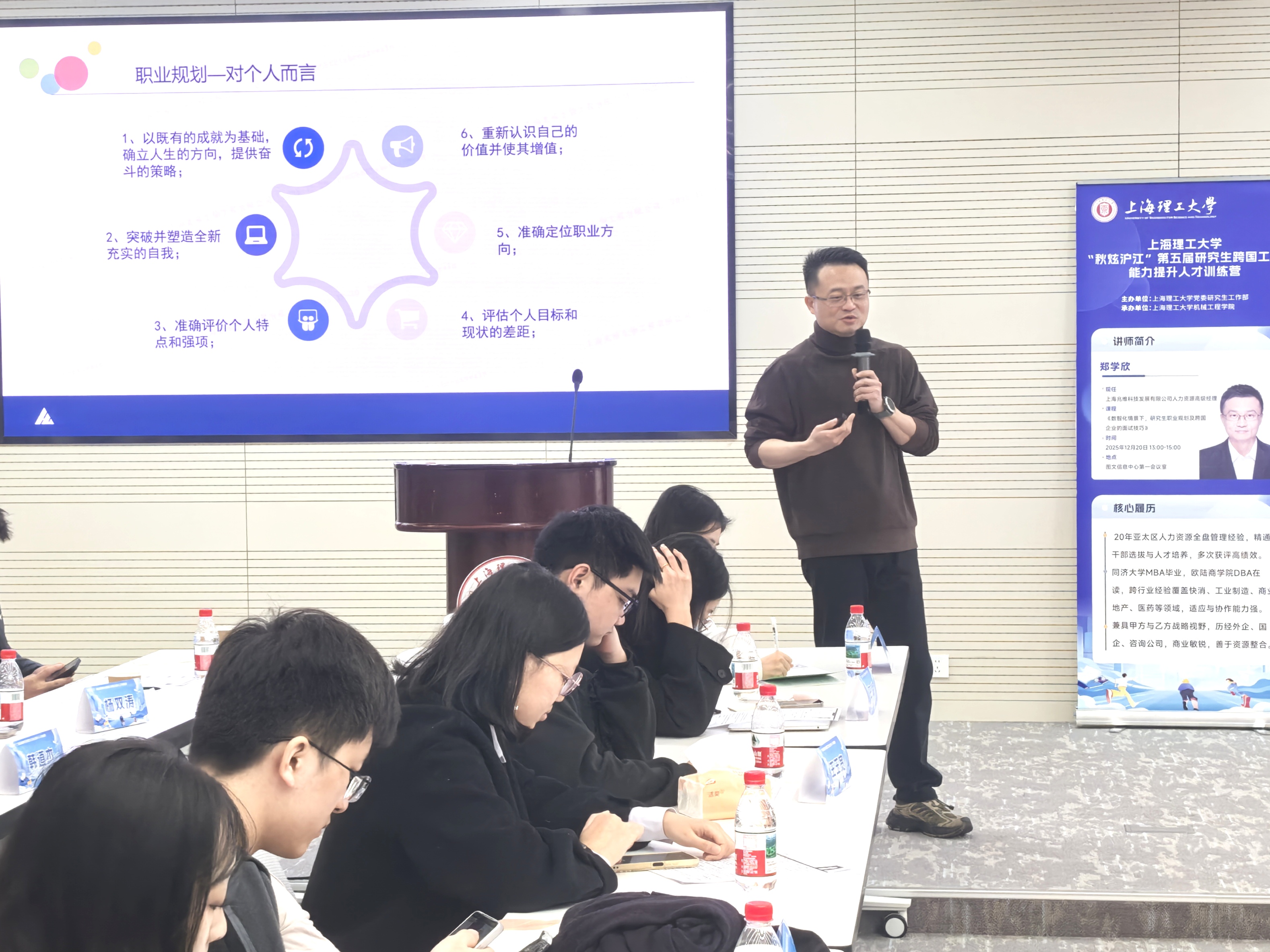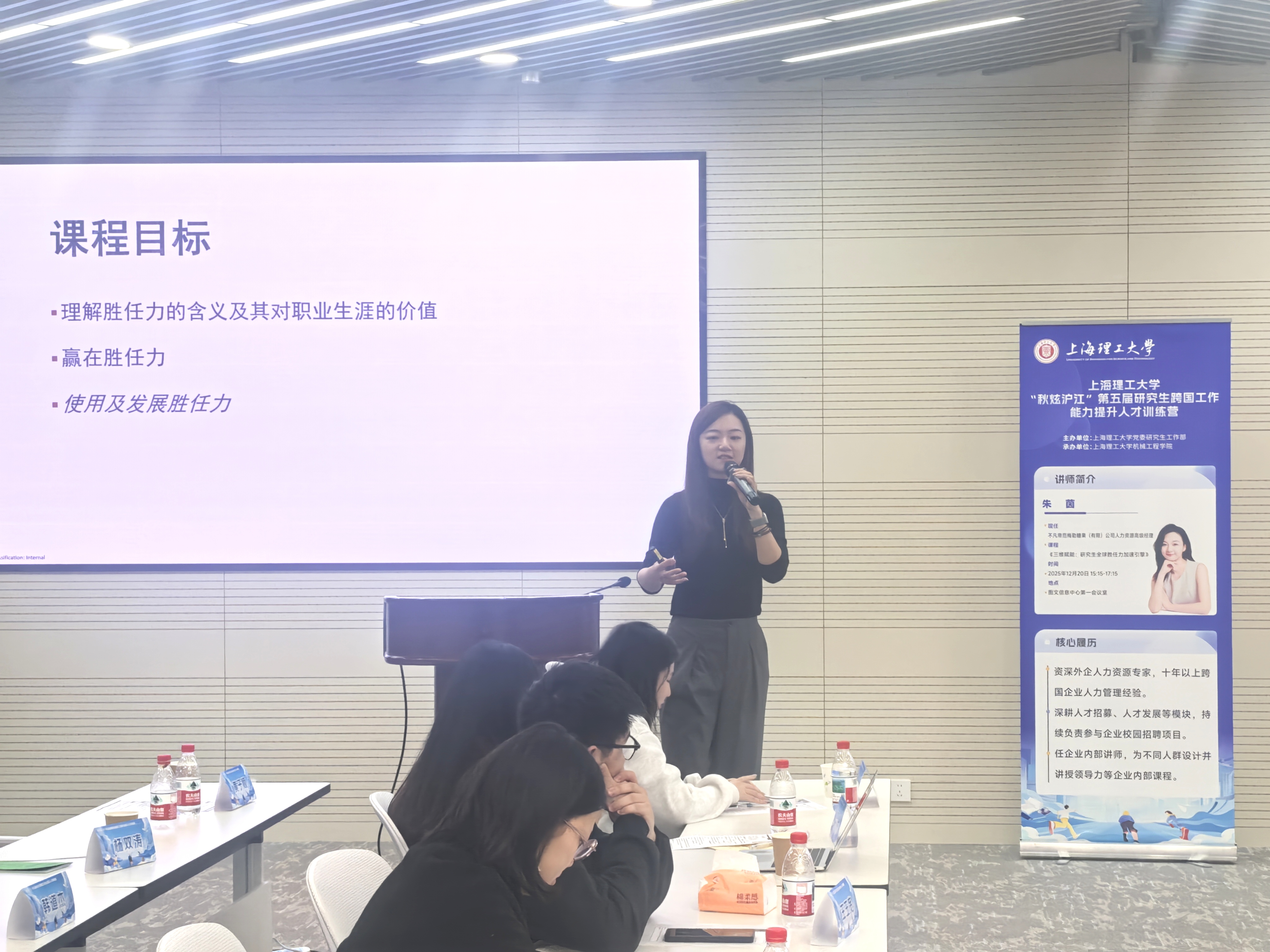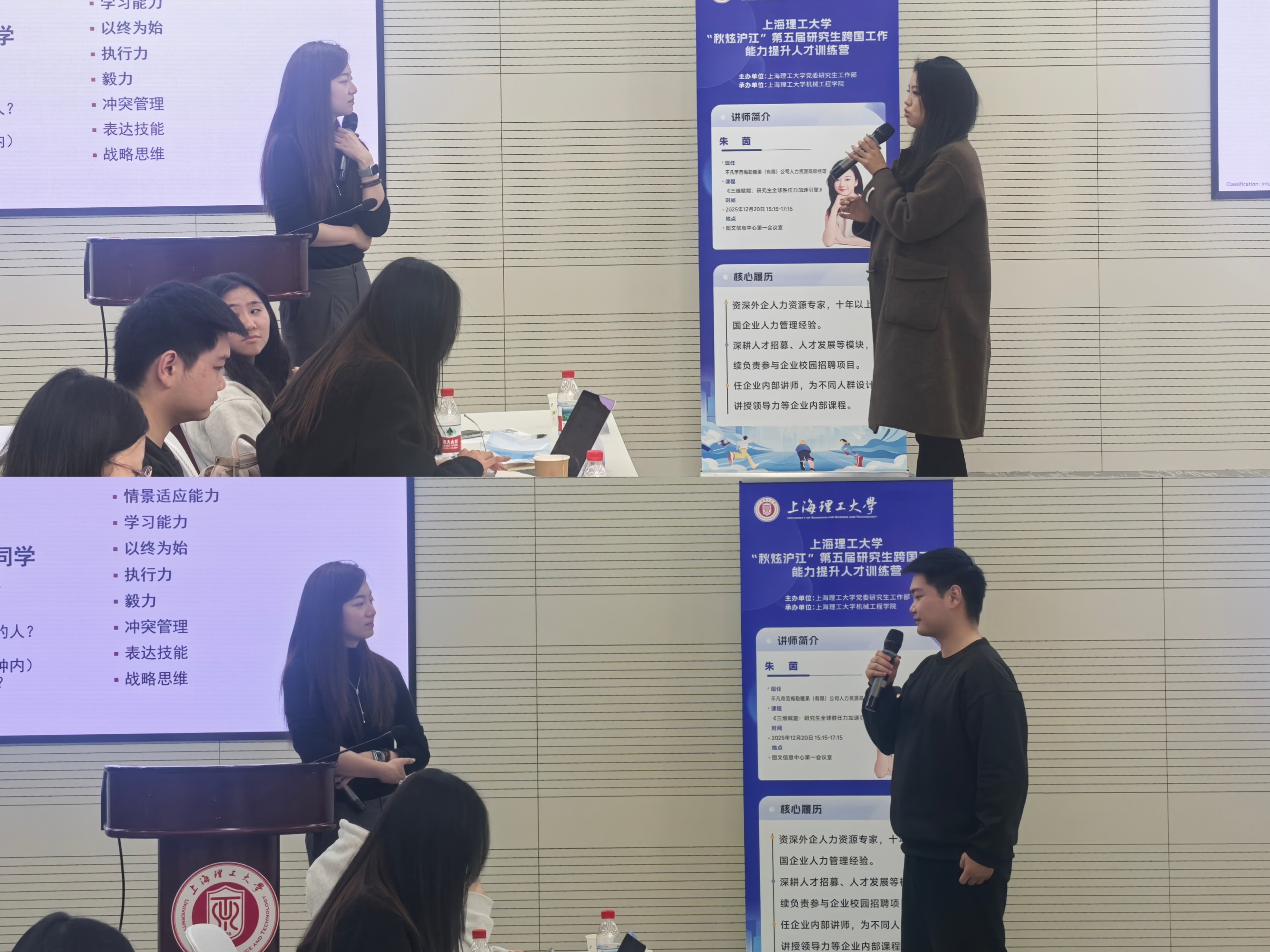 12月20日下午,上海理工大学“秋炫沪江”第五届研究生跨国工作能力提升人才训练营于图文信息中心第一会议室开展培训。本次培训有幸请到来自上海兆维科技发展有限公司的人力资源高级经理郑学欣,以及来自不凡帝范梅勒糖果(有限)公司的人力资源高级经理朱茵担任讲师。